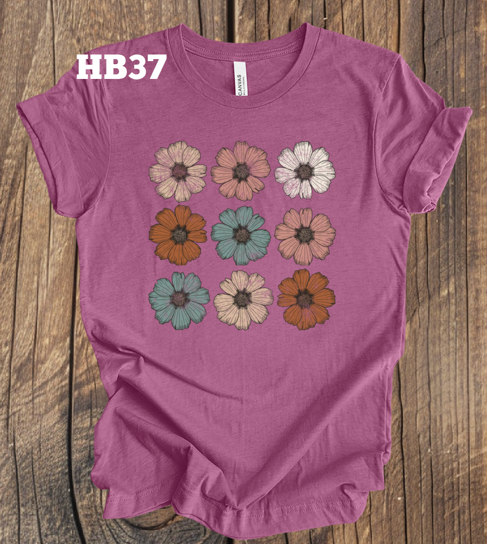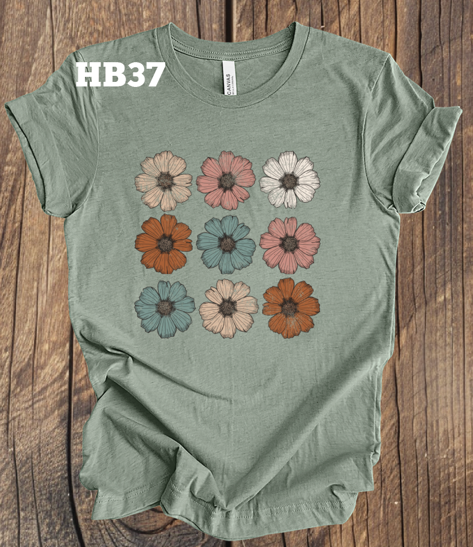 Bella+Canvas Heather Ice Blue, Heather Magenta, Heather Sage, or Heather Military Green unisex short sleeve with direct-to-film. Scarlow Digital design - do not copy. Product HB37.