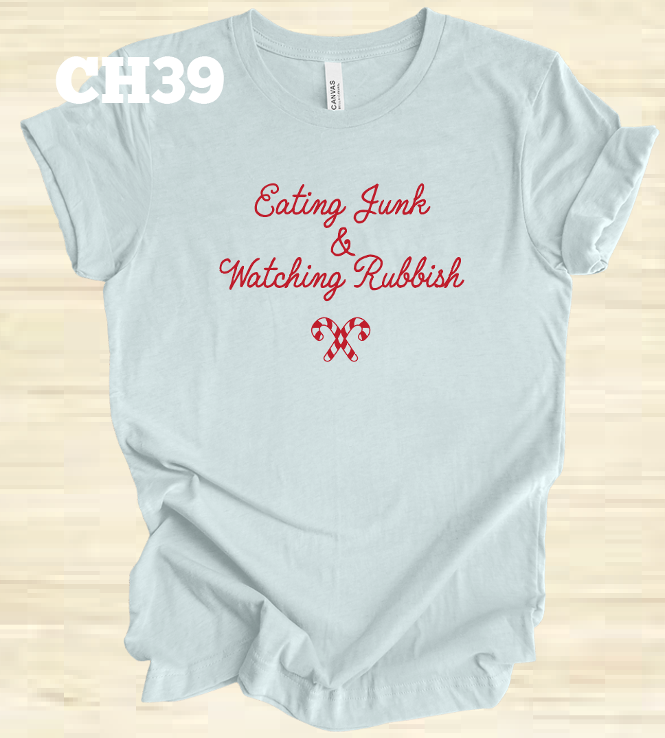 Bella+Canvas Heather Ice Blue unisex short sleeve with red ink. West Market original design - do not copy. Product CH39.