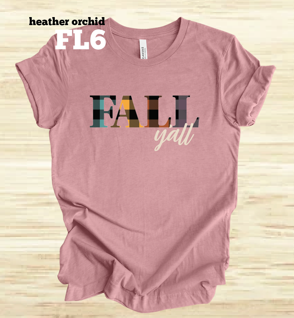 Bella+Canvas Heather Orchid, Heather Tan, or Heather Sage unisex short sleeve with direct-to-film. Jerzees crew neck on Oatmeal Heather. West Market original design - do not copy. Product FL6.