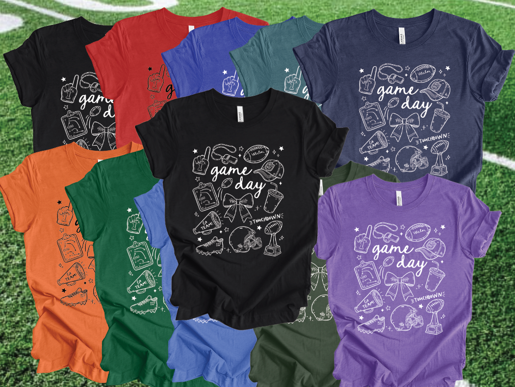 Bella+Canvas Heather Navy, Red, True Royal, Deep Teal, Black, Orange, Grass Green, Columbia Blue, Forest, and Team Purple unisex short sleeve with direct-to-film or screenprinted. West Market original design - do not copy.