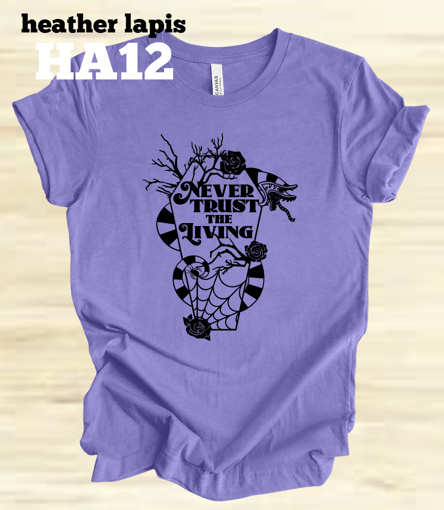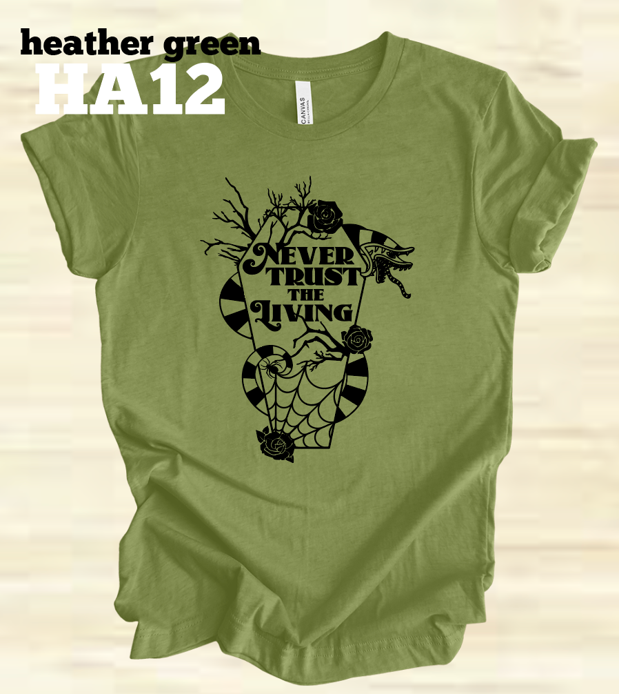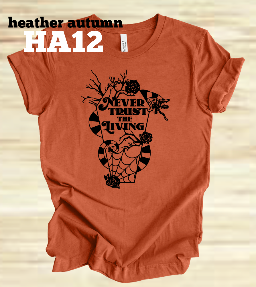 Bella+Canvas Heather Autumn, Heather Lapis, or Heather Green unisex short sleeve with black ink. West Market original design - do not copy. Product HA12.