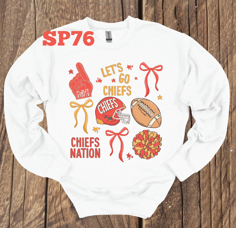White Gildan crew neck sweatshirt with direct-to-film. Scarlow Digital design - do not copy. Product SP76.