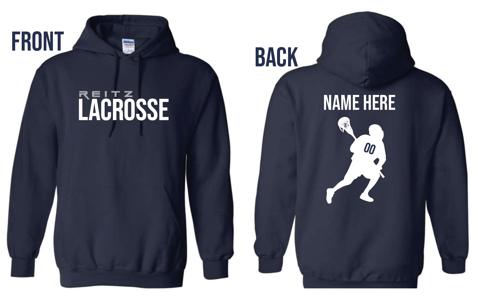 Gildan Solid Navy Blend or Athletic Heather hoodie with direct-to-film. Front and back design. West Market original design - do not copy. Product SP106.