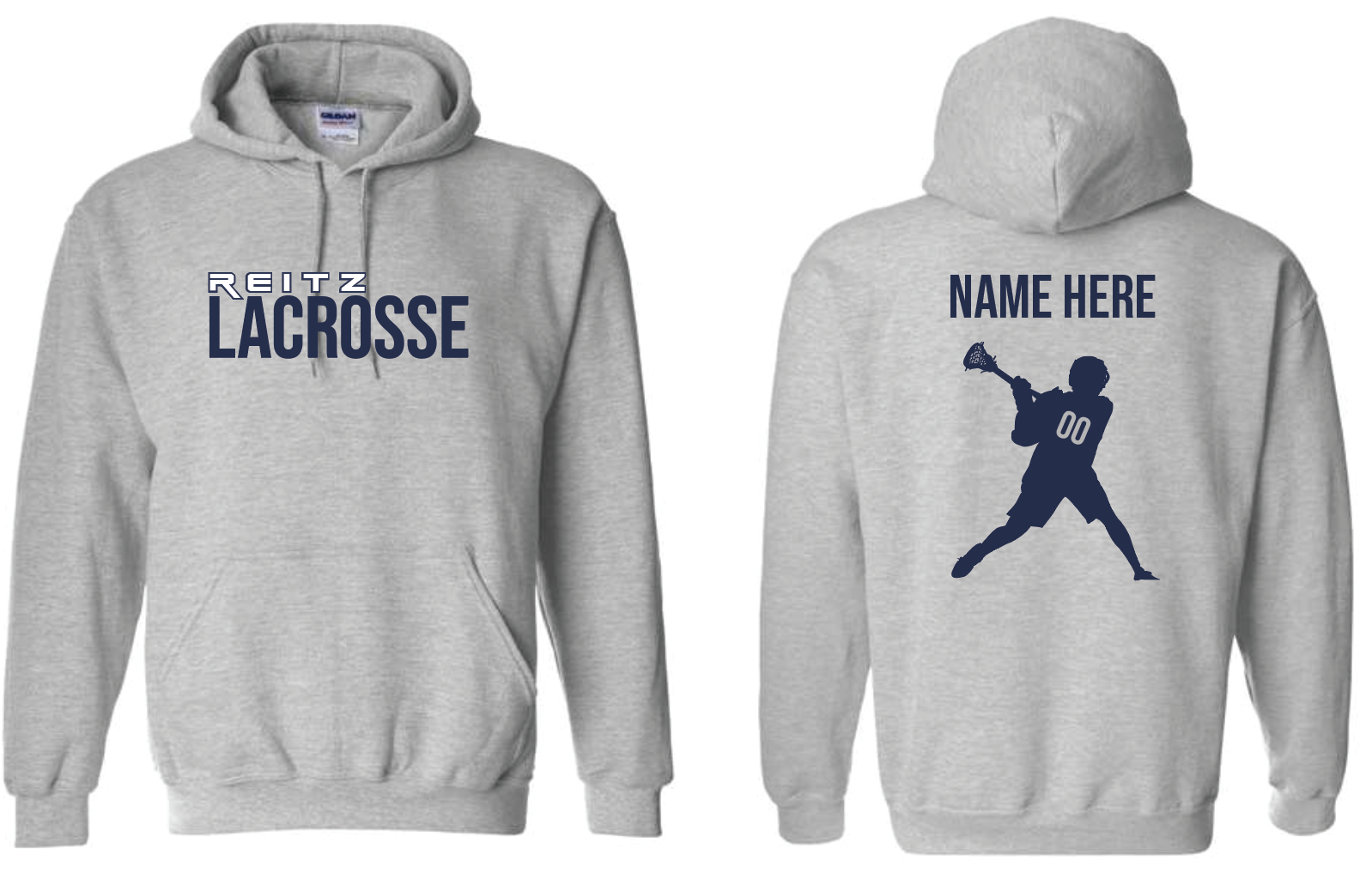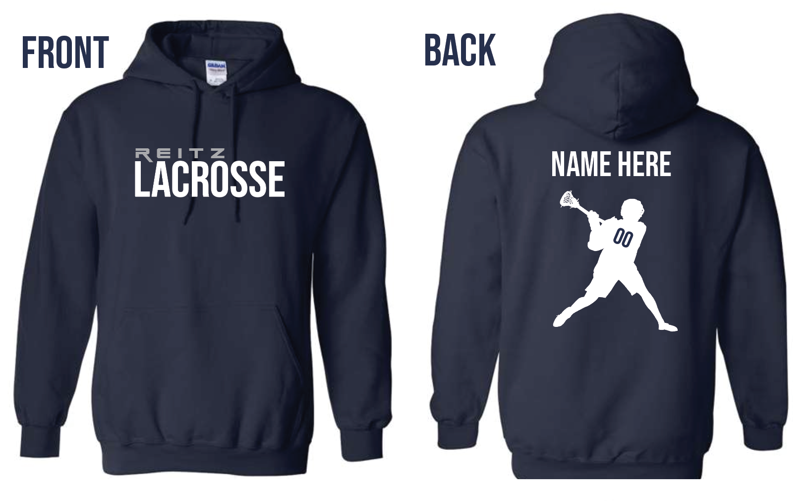 Gildan Solid Navy Blend or Athletic Heather hoodie with direct-to-film. Front and back design. West Market original design - do not copy. Product SP107.