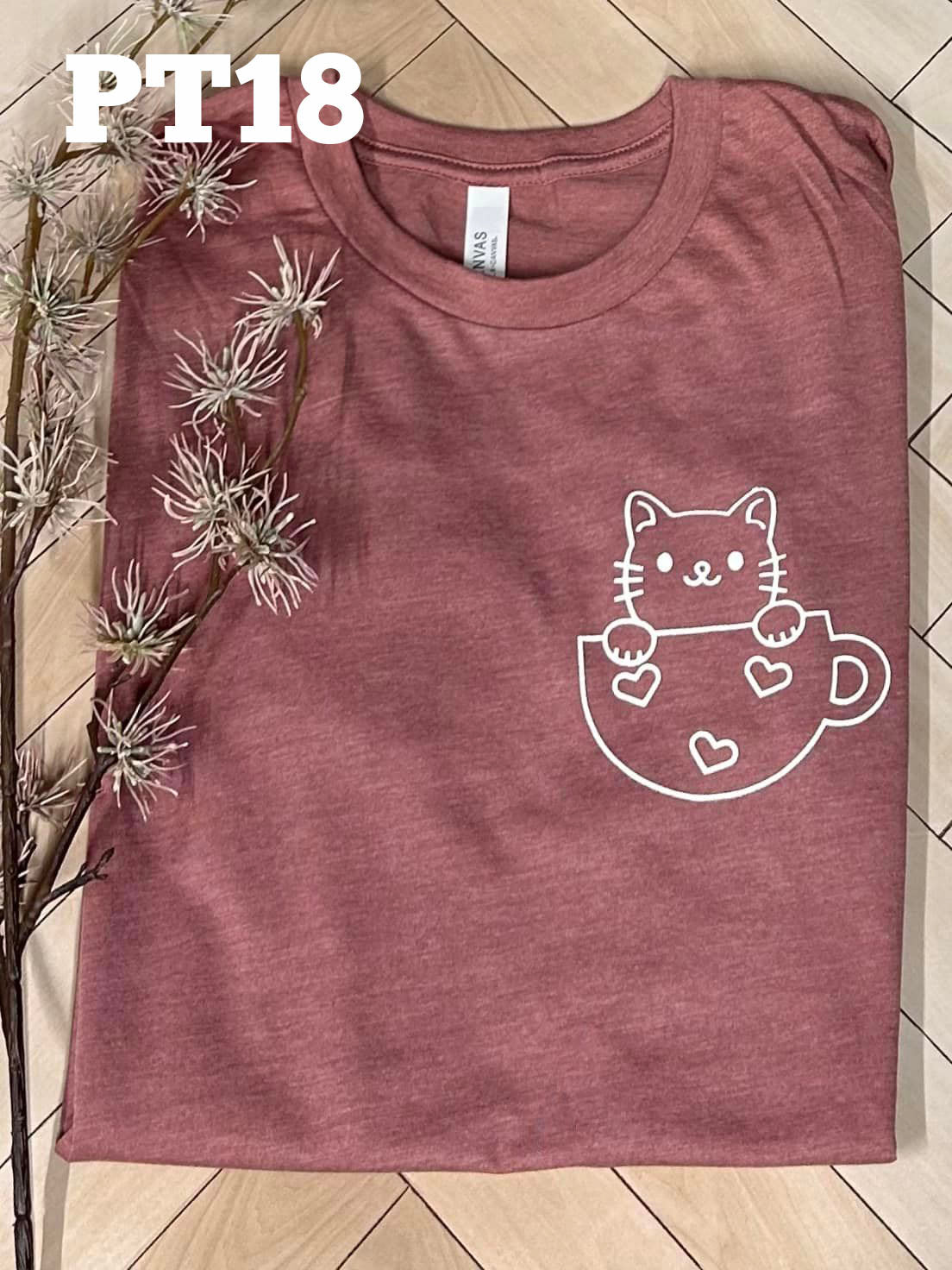 Bella+Canvas Heather mauve unisex short sleeve with white ink on left chest. Product PT18.