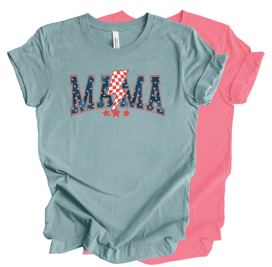 Bella+Canvas Heather Blue Lagoon or Neon Pink unisex short sleeve with direct-to-film. Etsy design - do not copy.